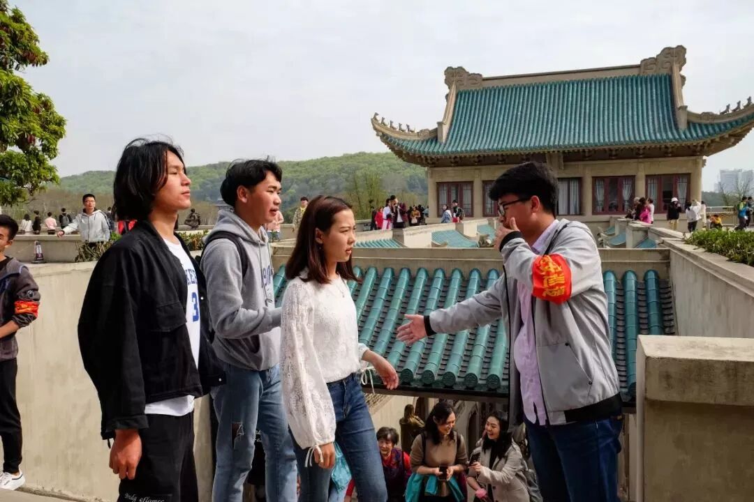 有一次碰到一个老爷爷,主动跟我们主动讲牌坊背后 “文法理工农医”里的“法”繁体字为什么那样写。有时候和游客聊天,会发现很多游客对武大樱花的历史了解得比我们还多呢。