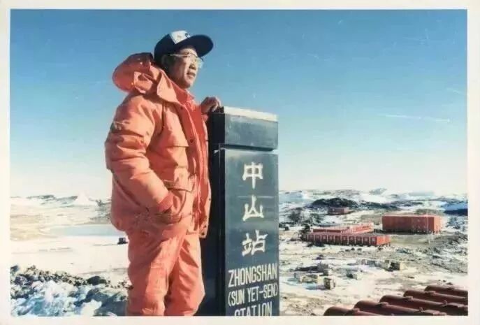 1989年1月,鄂栋臣参加创建南极中山站时站在他建立的中山站大地原点旁