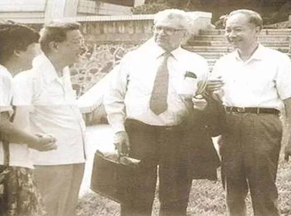 谭崇台(右一)与外国学者亲切交流
