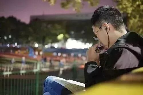 ▲ 夜晚在操场旁吹口琴的同学 摄影:王浩成