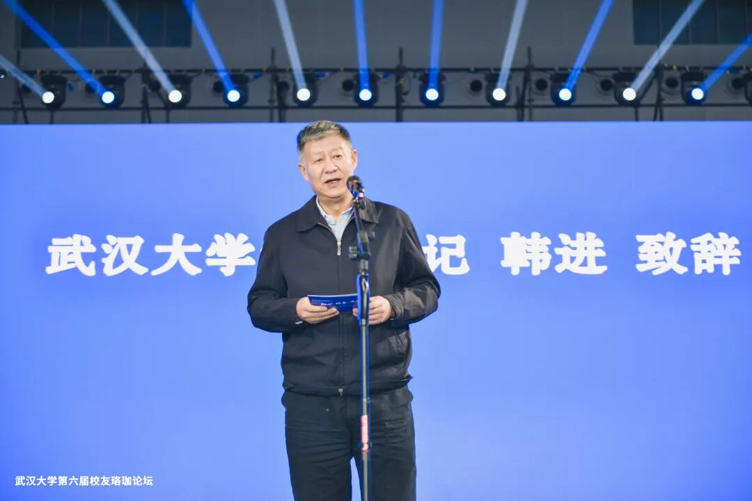 武汉大学党委书记韩进代表学校对各位校友及嘉宾的到来表示热烈欢迎。他指出,武汉大学有世界上最优秀的校友团体,校友珞珈论坛发出了武大校友的声音,也是武大的声音,武汉的声音。希望武大学子在聆听校友们的经历,拼搏精神的同时,更注重了解校友们的初心和使命感,以及对国家和母校的情怀,从而不断了解社会,体验人生,思考自己。