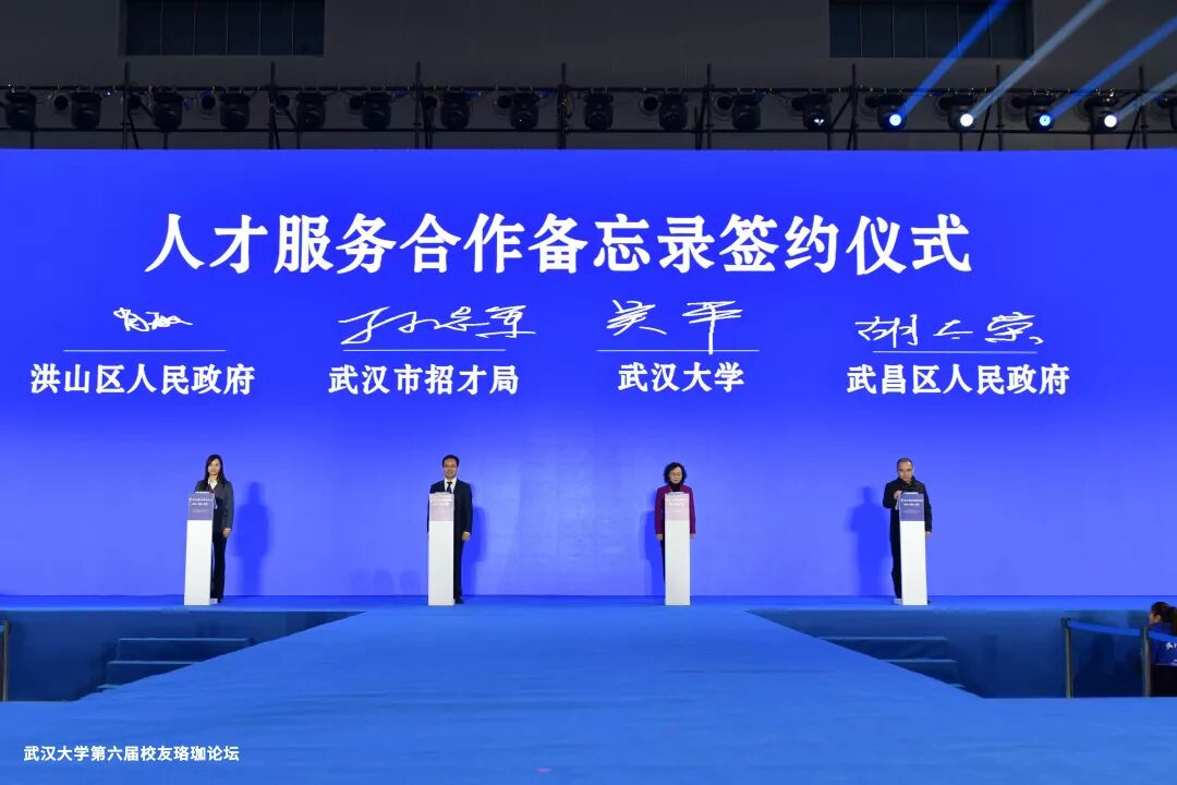 论坛上,武汉市招才局、武昌区人民政府、洪山区人民政府再与武汉大学签署一份人才服务合作备忘录,加大对武汉大学高层次人才引育的支持力度,同时在地方政府和高校间建立起人才引进、共育的互利协作机制。