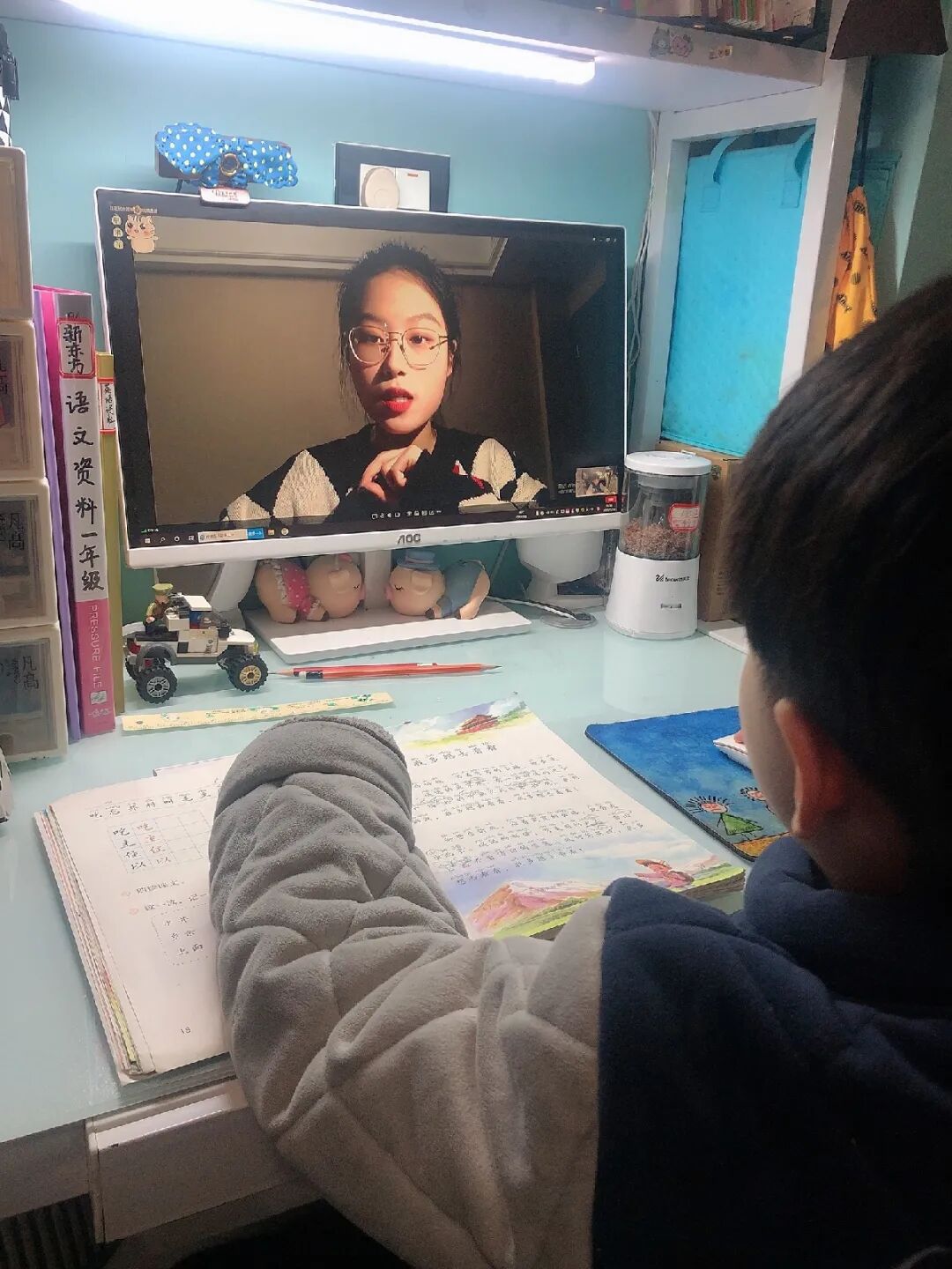 根据医务人员子女的具体情况,服务队制定了短期和长期的学习计划,为辅导的孩子们进行个性化家教活动。采用ppt,腾讯会议,QQ视频,微信电话,钉钉等等上课工具,明确了五个一的服务标准,具体模式包括“一个团队对接一个家庭”,“一人一计划”,“一科一备课”,“一日一汇报”,“同读一本书”。从有老师辅导的科学备课,到利用网络工具的在线上课,再到和孩子们相处的课下时光,志愿者们都做足了准备。