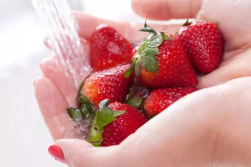 首先用流动的水连续冲洗几分钟,把草莓表面的病菌、农药及其它污染物除去大部分。注意:不要先浸在水中,以免农药溶出在水中后再被草莓吸收,并渗入果实内部。