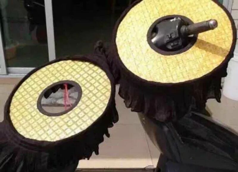 ▲戴凉帽的阿婆
