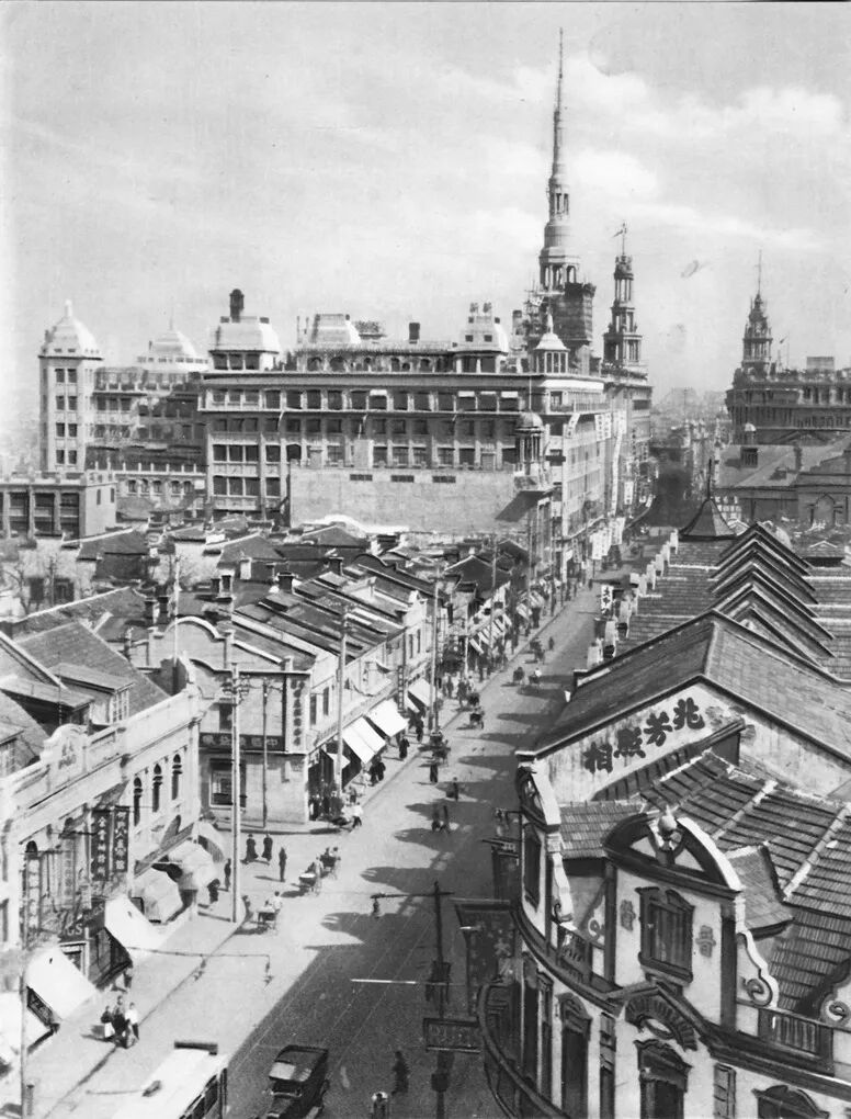 1928年南京路东望,照片上可见石库门建筑群