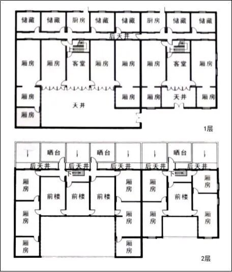 石库门建筑更接近于江南传统二层楼的三合院或四合院形式