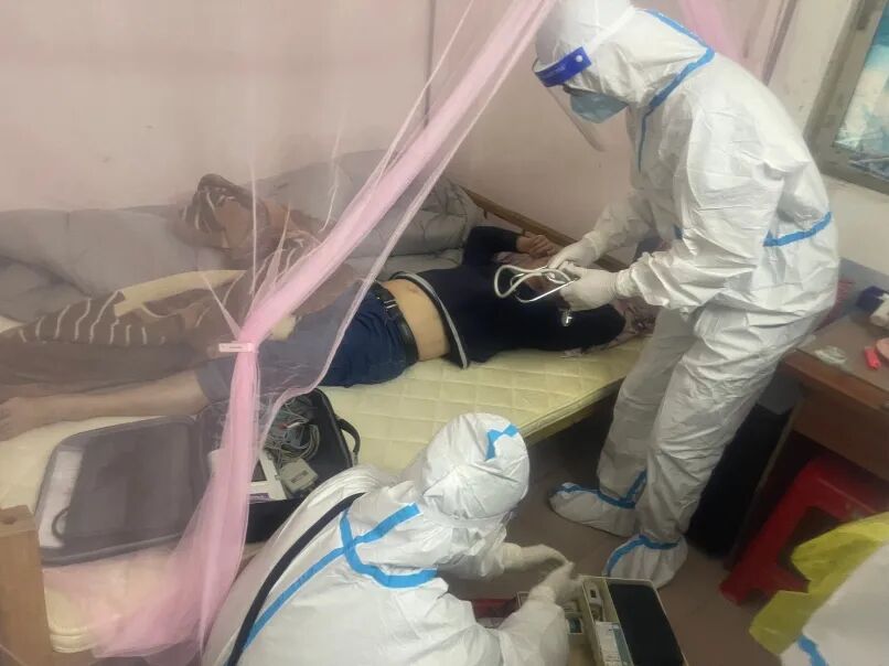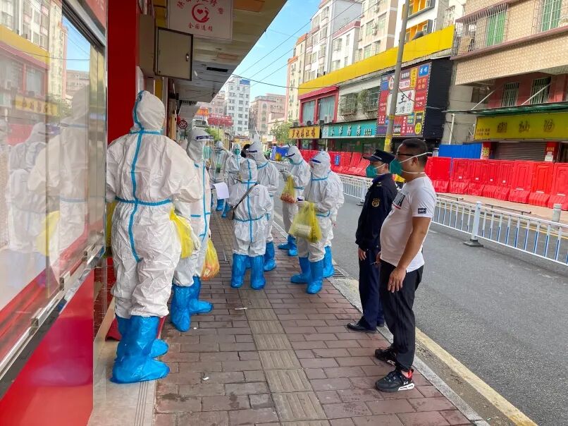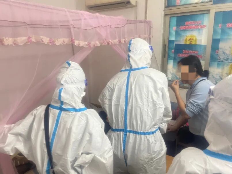11月9日13:00左右,萧岗北门东街风险区内,防疫人员正开展上门核酸采样。家住某栋楼201房的刘女士如往常一样,提醒在房内睡觉的丈夫邹先生起来做核酸检测。