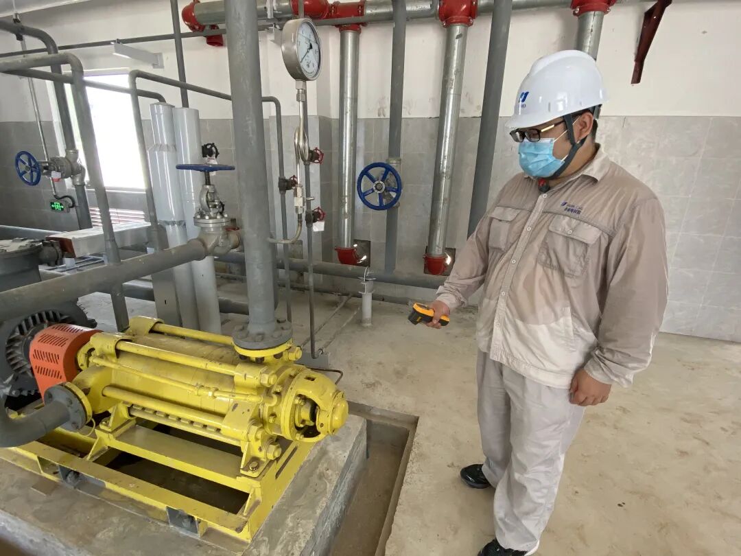 华电柬埔寨西港调试技术部工作人员在测燃油泵轴承温度。