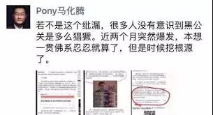 腾讯这次行动,早有苗头。6月20日晚,马化腾针对一篇漏洞百出的黑稿发了条朋友圈称,“若不是这个纰漏,很多人没有意识到黑公关是多么猖獗。近两个月突然爆发,本想一贯佛系忍忍就算了,但是时候挖根源了。”