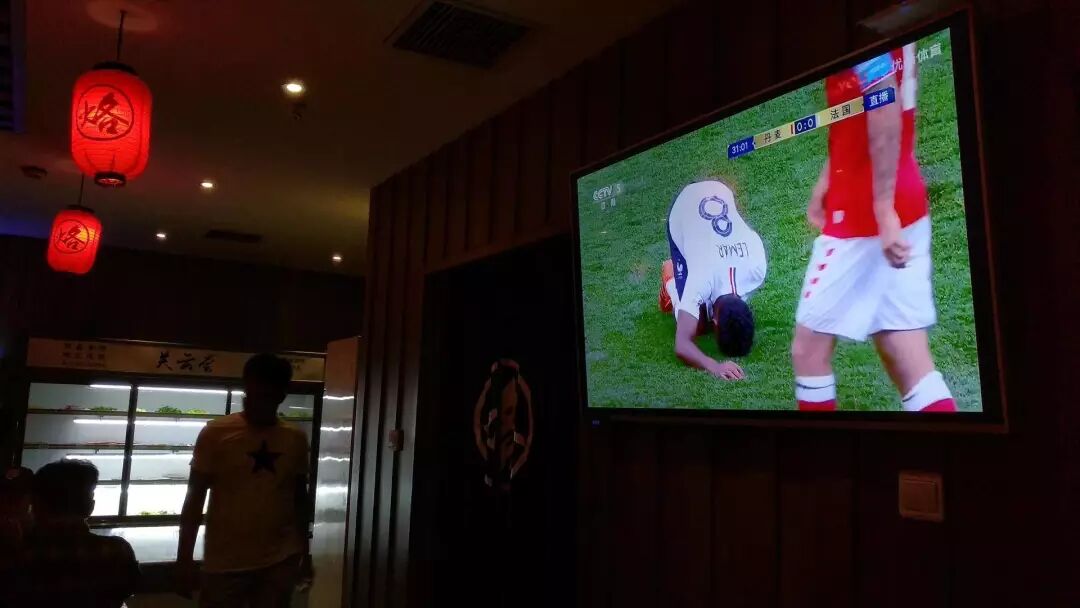 北京的一家餐饮店在播放世界杯比赛