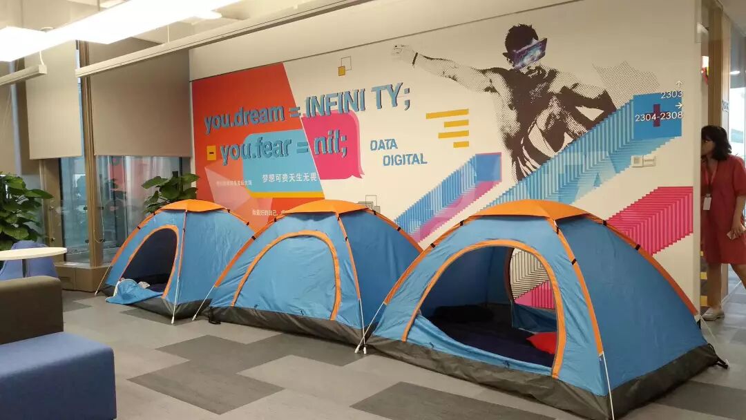 6月的一天,马银河早上7点来到公司,他去饮水机接水,一个女生突然从饮水机旁边的帐篷里探出头来。她坐直身子,揉了揉眼睛,爬起来,走了。