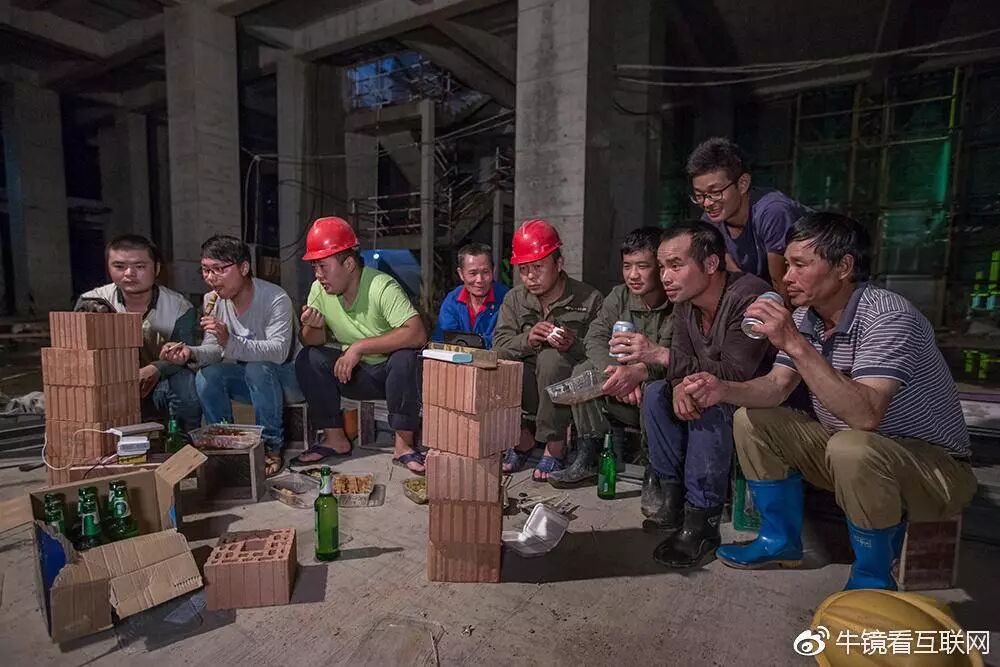 建筑工人看世界杯 图片来源:@牛镜看互联网