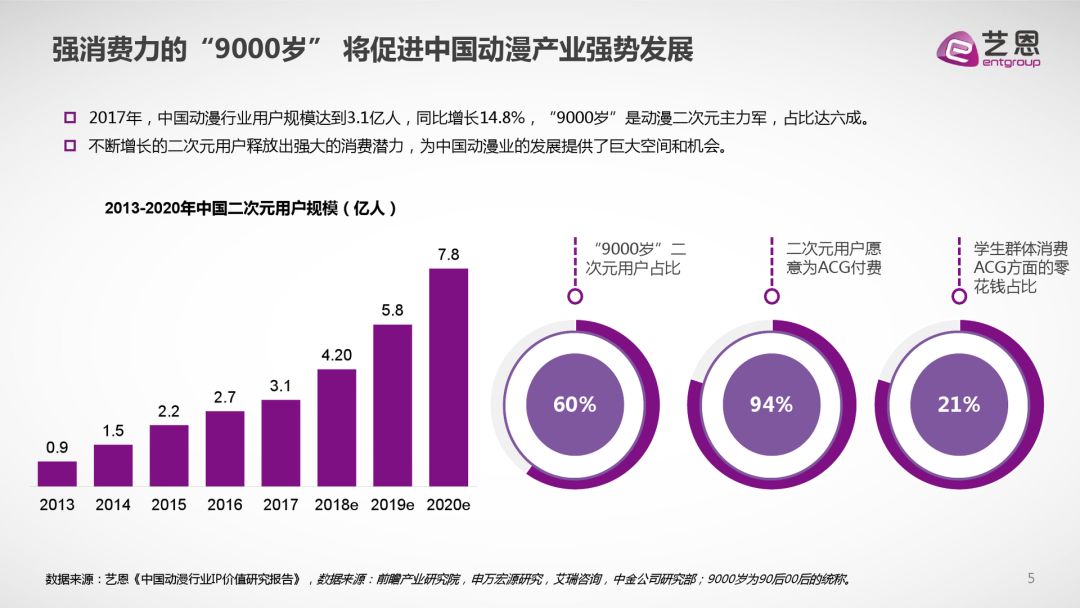 根据艺恩网的《2017年中国在线动漫市场白皮书》,2017年的动漫用户规模达到了3.1亿规模,9000岁超过了60%。这是二次元内容所以诱人的原因,一在用户规模巨大,二在用户结构年轻化。