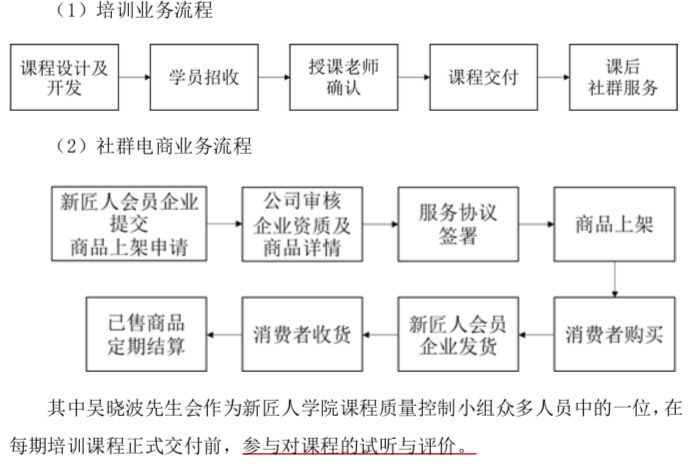 在电商业务中,新匠人学院课程很重要,吴晓波会在课程上线前,参与试听与评价,以品控的角色出现。