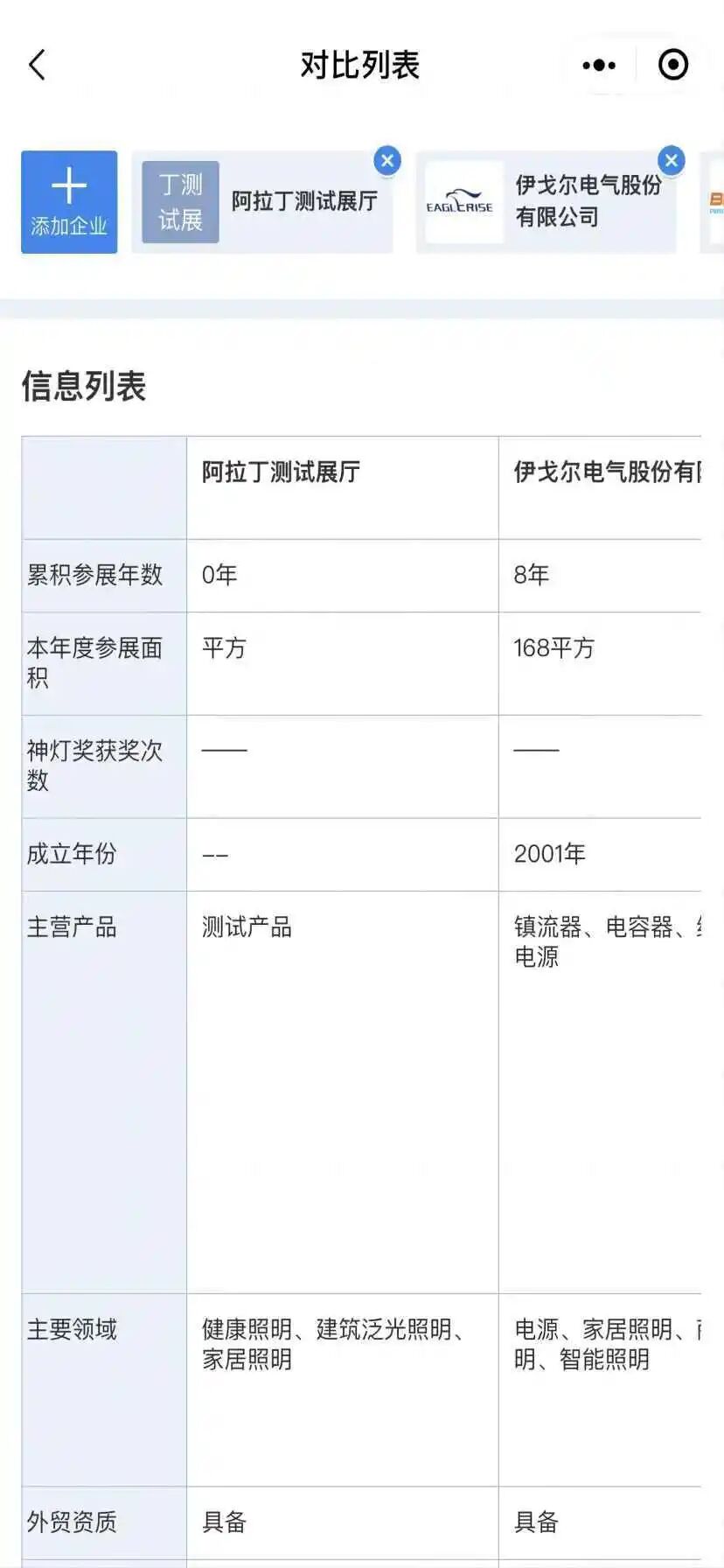 增加企业对比功能