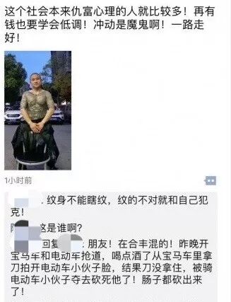 2,从之后朋友圈的爆料看,纹身男还喝了酒。