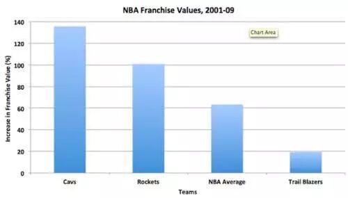有媒体统计,在姚明为火箭效力期间,火箭球队价值上升了100%: