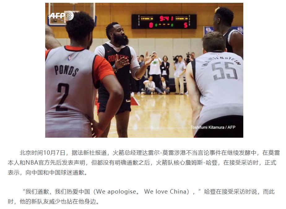 其实这次我们期待的真的也不多,用央视的话来说,中国的篮球市场期待的没别的,甚至都没期待火箭队解雇莫雷,只是希望莫雷至少应该出来道个歉: