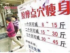 点穴减肥,表面上点穴2分钟,实际上要求消费者24小时禁食,最多喝矿泉水。