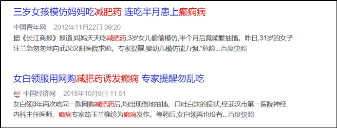 有人吃了朋友圈购买的减肥药,而导致了精神障碍;有人患上胆汁淤积性肝病;有人诱发癫痫。