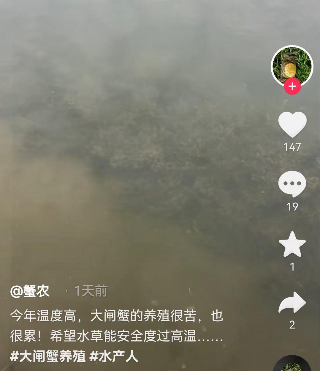 ▲ 一位养殖螃蟹的博主录下暴晒中的蟹田。图 / 网络