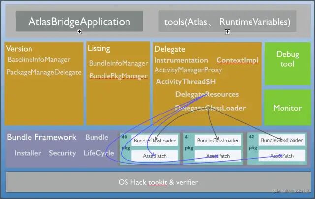 大概原理就是这么简单,启动插件组件需要依赖容器,容器负责加载插件组件并且完成双向转发,转发来自系统的生命周期回调至插件组件,同时转发来自插件组件的系统调用至系统。阿里系Atlas: https://github.com/alibaba/atlas360系RePlugin: https://github.com/Qihoo360/RePluginRePlugin是一套完整的、稳定的、适合全面使用的,占坑类插件化方案:- 完整的:让插件运行起来“像单品那样”,支持大部分特性