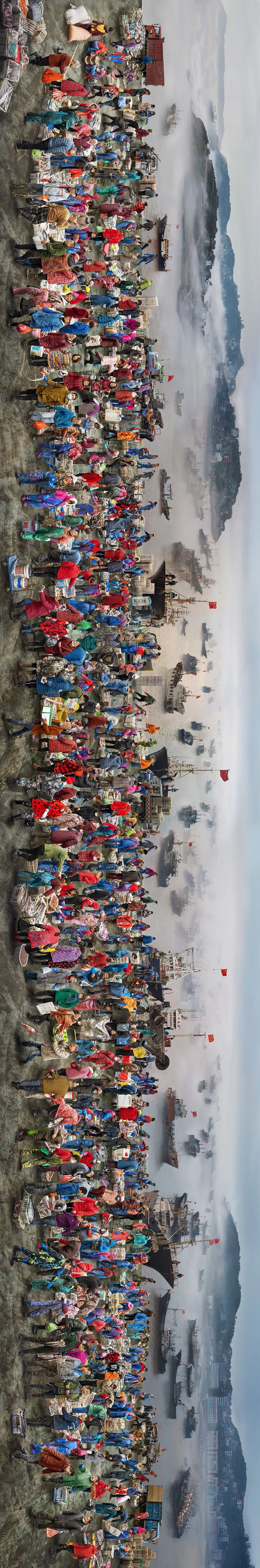 柳军(以下简称“柳”):是的。其实,我与颜劲松相识就起于他的长卷作品。2018 年,我去平遥国际摄影大展做评委。当时,平遥大展里有三五百个小展,作品近万幅。在展区的一个过道里,我看到了一幅大尺寸的长卷作品《向佛的脚步》,很受触动,前前后后看了十多分钟。这幅作品气势恢宏,在展区里很突出,署名“颜劲松”。作品旁只有一个看守场地的人。我把电话号留给了他,麻烦他转告作者,可以电话联系我。第二天,颜劲松给我打了电话,我又去了那个过道,了解到他是搞装修的,很好奇,就问他这幅作品的创作是否完全由他自己完成。他回答说,拍摄与后期都是自己做,创作一幅作品大概需要几个月的时间。