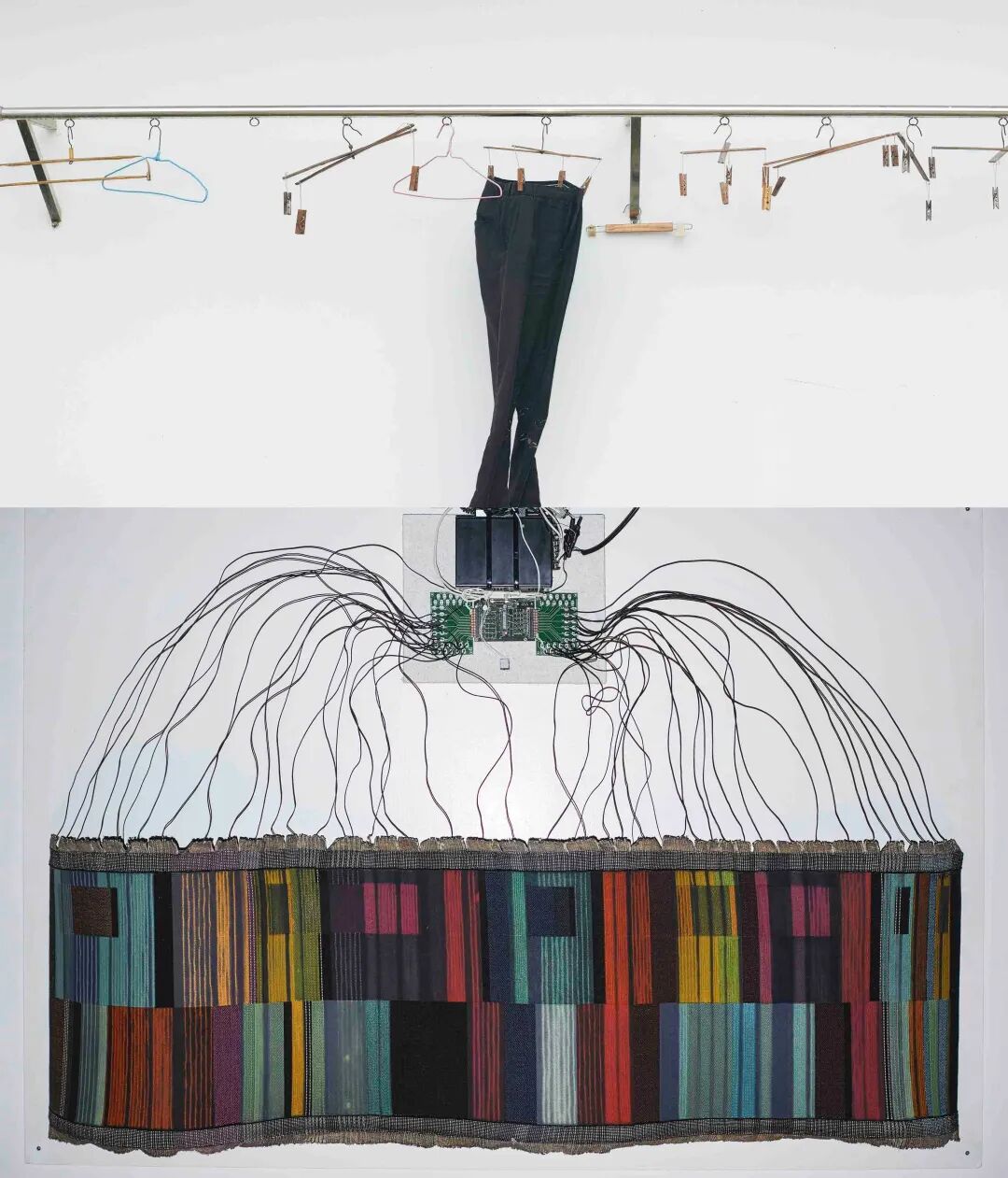 安静的性格让欧阳别有一种精准的细腻,他能敏感地觉察到物体中传达出来的情绪,并通过内化和转译的方式,将之传递给观者。在《潜伏》中,他将坚硬的工业设备和柔软的纺织物上下对照,原本毫不相干的物品因为色彩、形状或者方向的呼应,产生了微妙的“化学反应”。