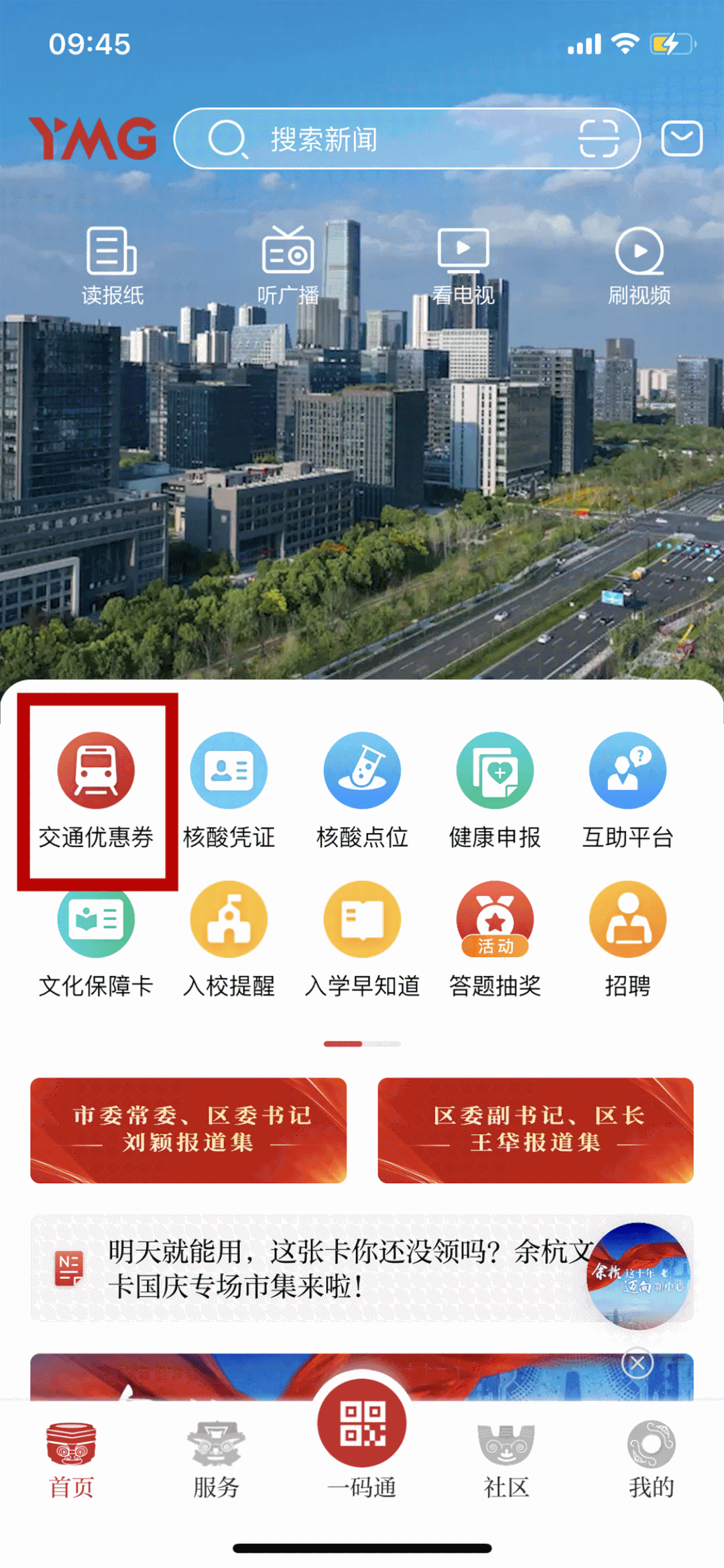 1.“看余杭”首页底部点击【余杭一码通】