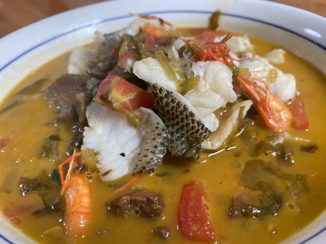 舍田湾面馆的招牌是金汤鲈鱼面,