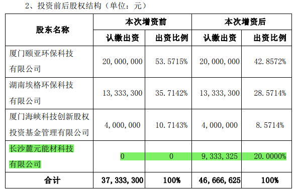2022年12月17日,ST开元( 300338)发布公告称,全资子公司长沙麓元能材科技有限公司(下称“麓元能材”)拟与厦门颐亚环保科技有限公司(下称“颐亚环保”)、湖南埃格环保科技有限公司(下称“埃格环保”)、厦门海峡科技创新股权投资基金管理有限公司(下称“海峡基金”)、陈刚、胡精沛和厦门资生环保科技有限公司(下称“资生环保”)签订协议。