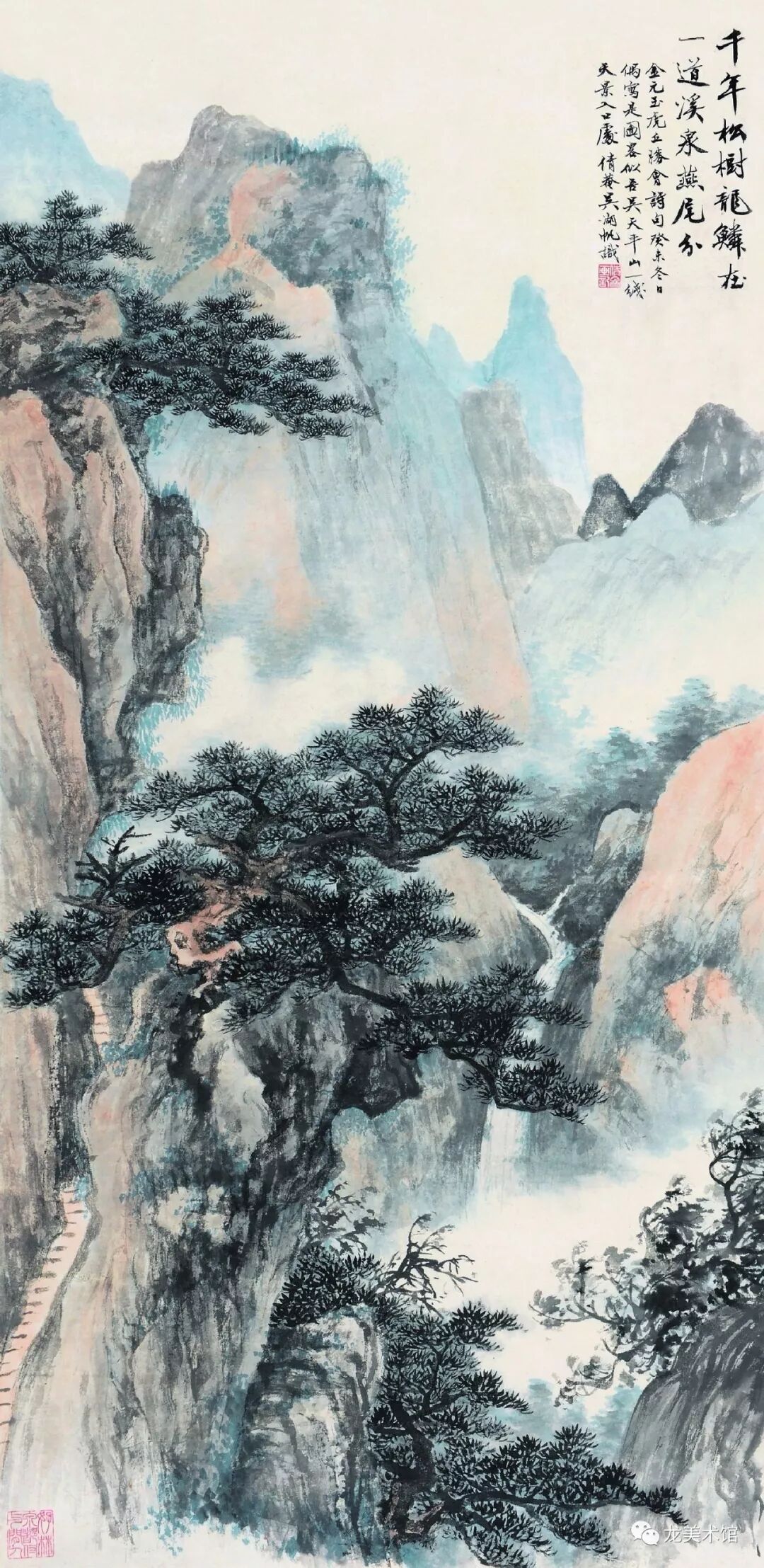 吴湖帆,《古松溪泉》,纸本设色,104×51厘米,1943年,龙美术馆