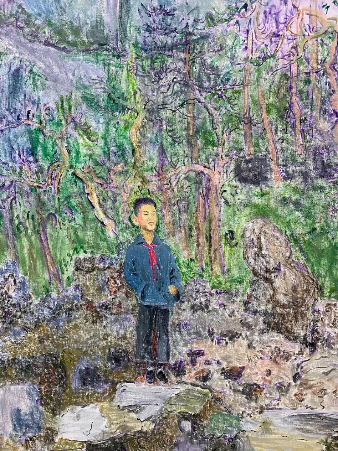 春芽挽着88岁高龄的母亲走在太白山的松径上,在他脸上,我分明看到了那种天真的兴奋,见他开心地笑道:“这是我妈的老家——外婆家——嘿嘿,我晓得咋个画了。”他转过身对他母亲说:“我要把你、把外婆、爸爸、冬苗和夏红——把我们全家都画进去。”在那一刻,他脑海里其实就萌生了与王蒙对话的机关,或一个契机,而王蒙的太白山,仅仅是他借题发挥的由头。在春芽看来,最好的语言具有一种如母语般的亲切感。