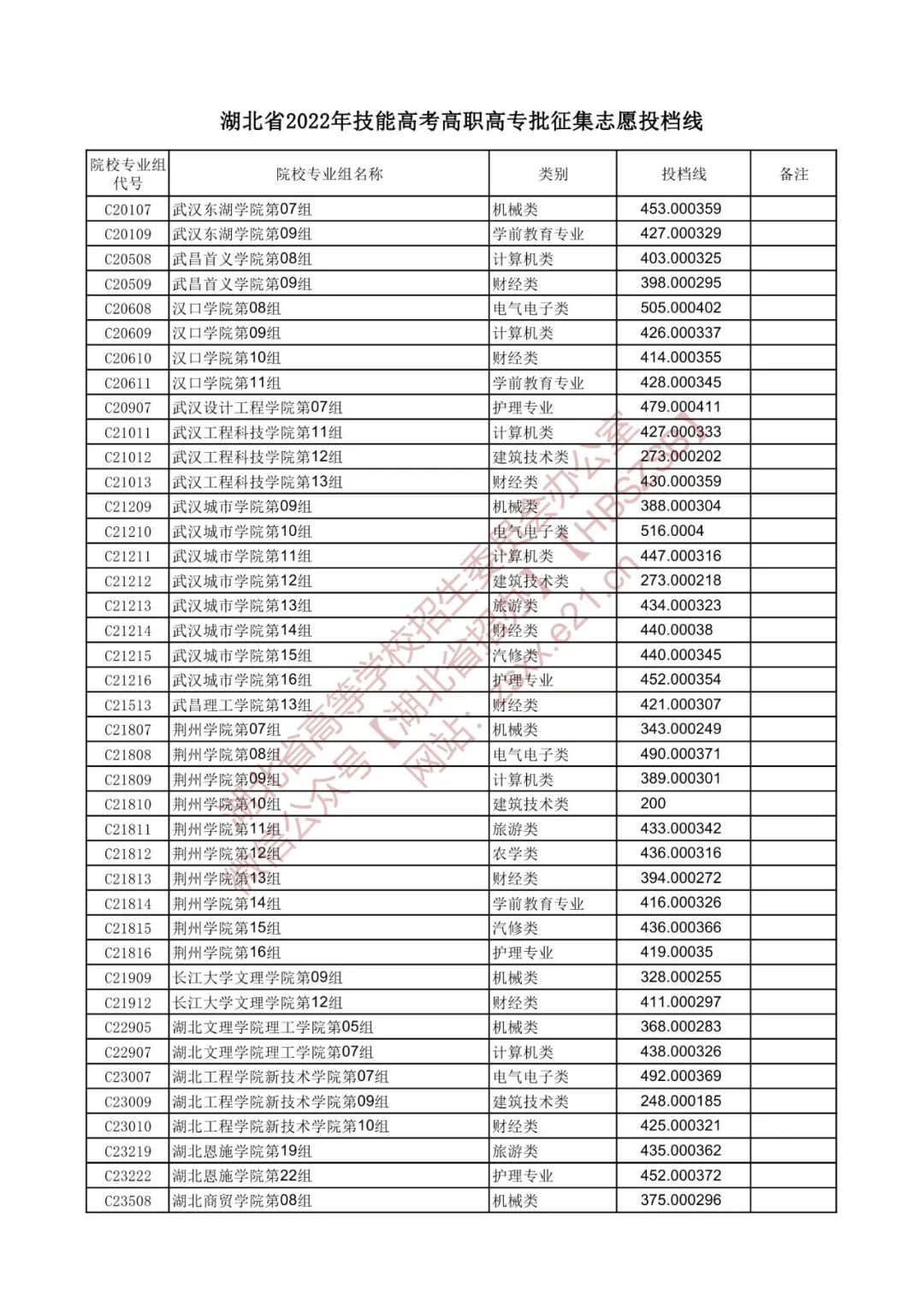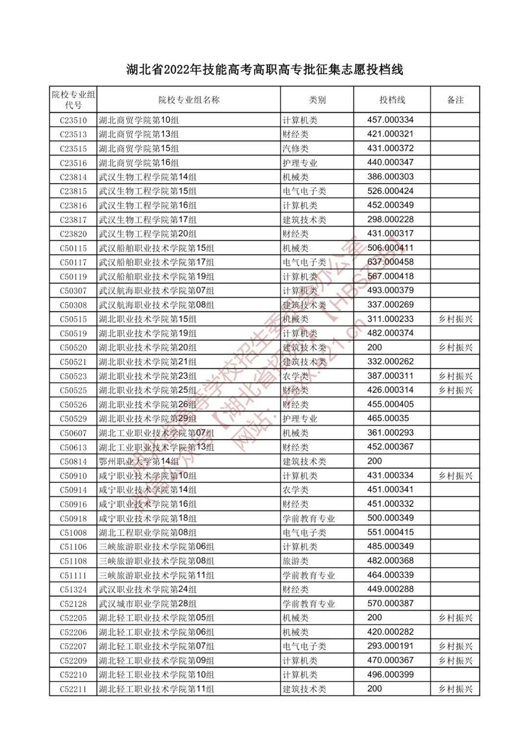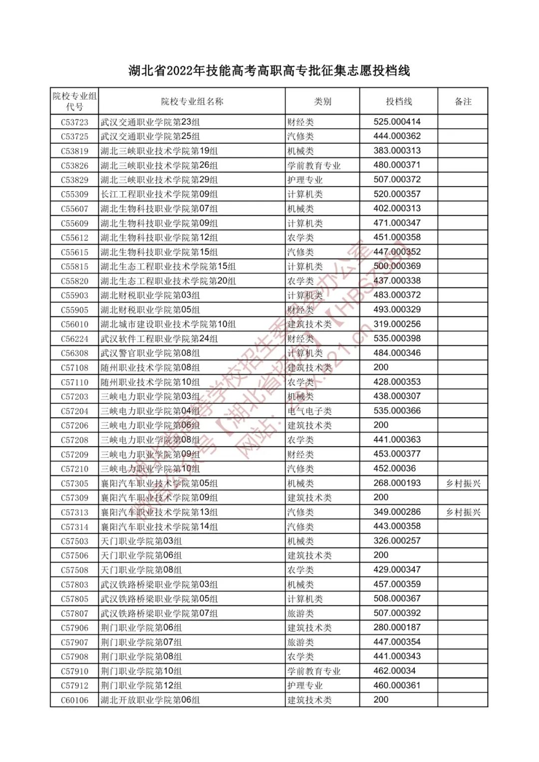 湖北省2022年高职高专