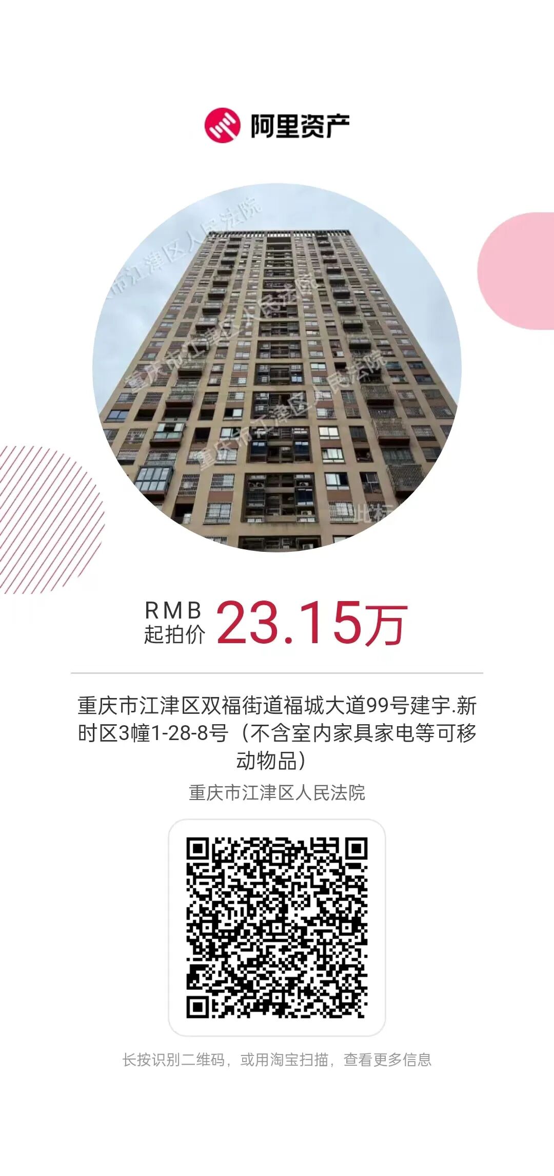 拍卖标的:重庆市江津区双福街道福城大道99号建宇.新时区3幢1-28-8号(不含室内家具家电等可移动物品)