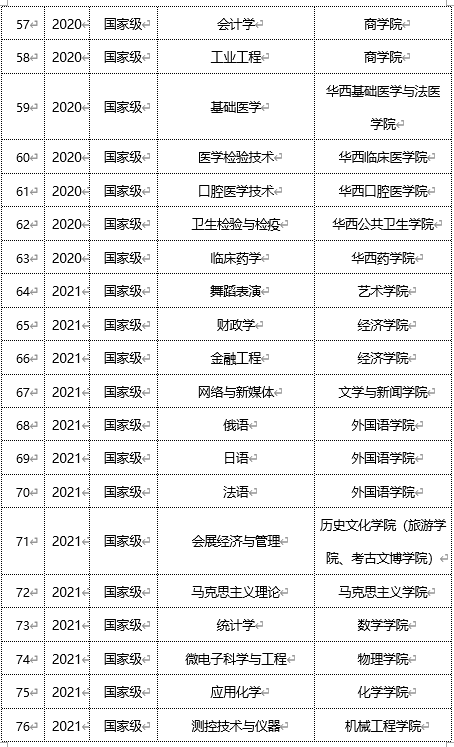 绵绵用真力,久久为实功。近年来,四川大学深入学习贯彻习近平总书记关于教育、科技和人才的重要论述、重要回信和重要批示,紧扣落实立德树人根本任务,为培养一流人才方阵,将一流本科专业建设作为办好一流本科教育的关键抓手,制定出台《本科专业结构调整与专业建设实施办法》《一流专业建设实施方案》,积极构建一流本科专业与一流课程、一流学科协同并进,与一流基地、一流大学统筹联动的新格局。一是坚持优化结构,构建合理专业布局。学校以需求导向,深化本科专业供给侧结构性改革,本科招生专业由131个缩减到105个;坚持特色导向,分类分层布局本科专业,按“对标国际、引领全国”和“体现区域特色、引领区域发展”不同定位,加强国家级、省级一流本科专业建设;坚持创新导向,积极推进“四新”专业建设,构建学科交叉特色明显的本科专业体系。二是坚持以质图强,推进优质课程建设。认定课程思政“榜样课”“标杆课”,积极营造“课程门门有思政、教师人人讲育人”的良好氛围;实施通识教育核心课程建设计划与一流课程建设方案,打造国家级、省级一流课程和优质教材,一批课程被认定为国家级一流课程,一批教材获评国家教材建设奖;持续推进“探究式”课堂教学改革,智慧教育环境改造、全过程学业评价和非标准化答案考试改革实现全覆盖。三是坚持精准发力,服务国家重大需求。推进与世界一流大学合作,与美国匹兹堡大学和德国克劳斯塔尔工业大学共建特色专业;主动对接“一带一路”建设,与波兰华沙大学合作开设“波兰语+”专业。推进“六卓越一拔尖”计划,首批入选“拔尖计划2.0”和“强基计划”国家级基地。依托临床医学、法学、新闻学等国家级一流专业建设点,实施各类卓越人才培养计划。四是坚持学科交叉,创新人才培养模式。积极探索交叉学科专业人才培养,对学生修读非本专业类课程提出明确要求。整合各学科专业和国家重点实验室、研究中心资源,实施“跨学科—贯通式”人才培养项目,共建有20个“华西生物国重创新班”等名师班、“计算金融”等交叉试验班和“法医学与法学”等双学士学位班。五是坚持评建互动,健全质量保障体系。以《普通高等学校本科专业类教学质量国家标准》作为专业认证评估的重要依据,大力推动工程教育专业认证和医科专业的国际认证评估。通过推进国家标准为核心的校内评估、完善校院两级管理体制机制,定期修订人才培养方案、组建质量保障专家团队等措施,建立本科专业质量保障体系,实行专业建设常态监控,不断提升专业建设质量和水平。2021年,教育部官网以“四川大学积极推进本科专业建设内涵式发展”为题,报道了学校专业建设成效。