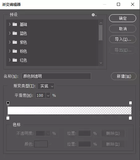 点击【渐变】条形框直接进入【渐变编辑器】页面。