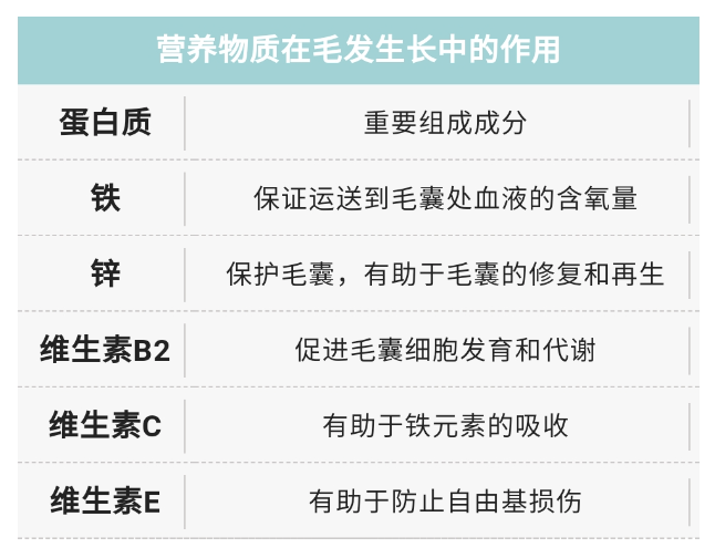 维生素、微量元素、氨基酸的缺乏会使毛发变细、稀疏,膳食均衡才能保证毛囊的营养摄取。女性要避免为了保持身材而过度节食,男性避免大量食用高油脂、高糖分的食物。建议日常补充钙、铁等微量元素。