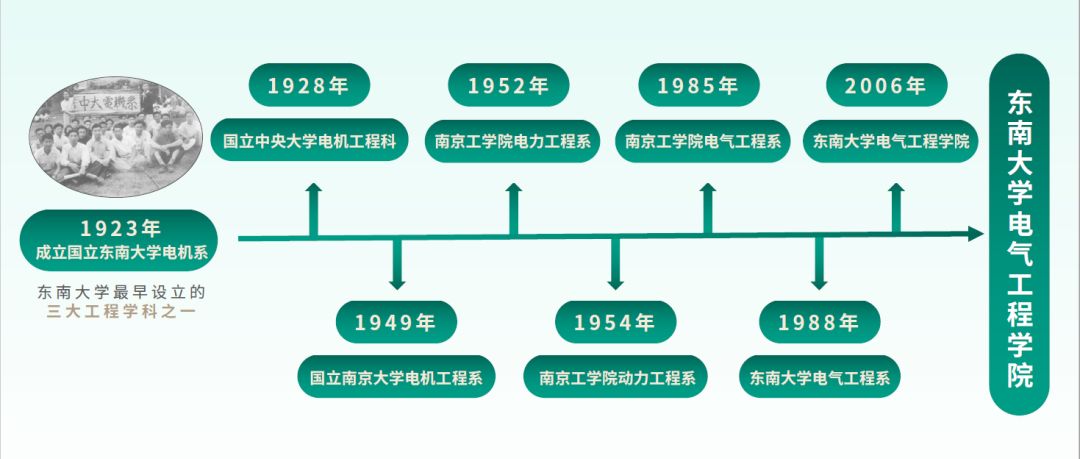 东南大学电气工程学院源起于 1923 年由茅以升先生倡导创立的国立东南大学电机工程科,历经国立中央大学电机工程系、南京工学院电气工程系等重要发展时期,著名学者顾毓琇、萨本栋、陈章、吴大榕、钱钟韩、冯纯伯等曾执教于此。毕业生中 5 人当选科学院院士,2 人当选工程院院士。学科是我国首个通过工程教育认证的专业,首批国家级一流本科专业建设点,江苏省优势学科,软科排名2019 年全国第 7、2020 年第 6、2021年第5。