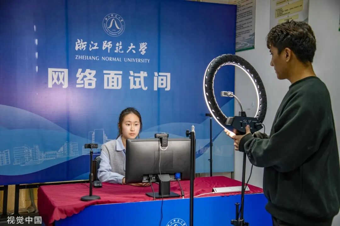 浙江师范大学新开设的“网络面试直播间”/ 视觉中国