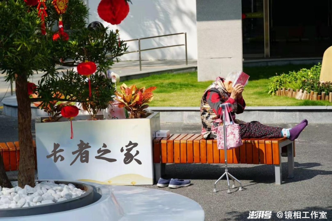 早上7点,深盐路上车流滚滚,响彻着焦躁不安的喇叭声。路口兀地亮起的红灯拦截下缓慢移动的车辆,行车人百无聊赖地等待着。西装革履的上班族夹着公文包,啃着流动摊贩处买来的早点,趁着几十秒的绿灯快速横穿马路。低头赶路的他们像无数攒动的沙丁鱼涌入地铁,经历着习以为常的早高峰,开启一天忙碌而紧张的生活。人们置身其中,对这座年轻城市蔓延的烦躁情绪早已熟视无睹。初入养老院,封闭的环境、生活的慢节奏让人产生强烈的时空割裂感。从沙头角地铁口出来,沿着盘山公路往西南走半公里路,便可望见依山而建的养老院。围墙隔挡开浮躁,四方院内是一番闲情逸致的景象。老人家备好“私藏”,悠闲地穿过走廊,陆续前往食堂吃早饭。4点起来做完操的孙立荣端着装有各色食补的碗,对养生他很有一套方法:“什么都有,大枣、倭瓜子、腰果、香蕉、苹果……”吃罢早饭,老人家拿起衣服或是抱着被褥晾在外面小广场上,坐着和它们一起晒太阳。时间的流失在围墙垒起的小院里更加悄无声息。在这,生活像摇动的钟摆一样冗长地继续。每天从宿舍出门,我们遇见坐在广场上晒太阳的爷爷奶奶,和他们挥挥手,嘻嘻哈哈打招呼。就像小时候住乡下,暖风微醺的傍晚出门散步,大家也总这么打招呼。我们走进范爷爷的房间时,他枕着胳膊,气定神闲地躺在床上,眯眼打起瞌睡,游离地哼着小曲,好不神气。孙立荣坐在过道的椅子上玩手机,看着今日头条上的文章。停下与他闲聊,他便从请教两个字到发散性地讲几个故事……去往办公室的路上,不过五分钟的路要花上一小时才能到达,这种“耽搁”却颇有恬淡快然之感,教人喜欢。“向阳而生”是院里老人的生活方式。阳光普照的日子里,总有许多高楼层的失能老人被推到A栋楼下小花园晒太阳。小花园里种了棵鸡蛋花树,光秃秃的。趁着明媚阳光,老人往树上挂满清洗完的衣物,风一吹,紫的、粉的、白的一齐飘摇。“清禽百啭似迎客,正在有情无思间。”小花园与院外公路仅有一墙之隔。9点一到,孙立荣踩着小碎步来到小花园背诗。他耳聋得厉害,为避免给别人添麻烦,平日里他少与人言语,选择独处。“跟我这个聋子说话,太费劲。这是我的问题,别烦人”。他身上有某种令人顿生恻隐之心的“自觉性”。为增强记忆、防止痴呆,他利用独处的时间背诗、唱歌。他告诉我们,最近他想通了,“我思想放开了,以前躲在那个小屋里读诗,现在我就在这花园里喊,有人经过还给我比大拇指。”孙立荣有些自豪。同一时间,林月红到书法室里边练毛笔字边听书,赵丽蓉则到闲置的网络室里弹钢琴,她不看乐谱,全凭自己摸索,回忆歌曲的旋律。在这,许多老人家都有各自打发时间的方法,他们更关切生活本身,在养老院里延续过去的兴趣或是发展新的爱好,以一种复归于自然的自由状态度过“无聊”的时间。养老院的集体活动一般安排在下午。长者之家的安排是周一放电影,周二周四唱歌,周三下午做手工,周五下午则是实用小课堂。而在福寿园,不同的只是活动内容。除去节日或是每月例行的长者生日会,这样的活动每天、每周重复着进行,几无变化,像在圈里打转。