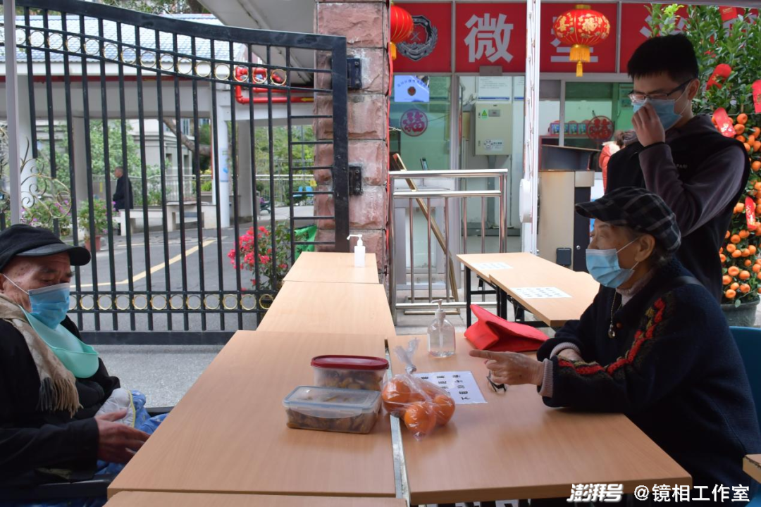 跨越3000多公里的距离,在哈尔滨生活了大半辈子的谢雪丽,晚年跟随儿子来到深圳,本以为这里四季如春,会是养老的胜地。但功不抵过,南北方生活差异带来的不适比宜人的气候更惹人在意,尤其在“民以食为天”的“吃”上。谢雪丽回忆起在东北住的养老院,餐费按顿收取,老人可以在食堂自由选择一日三餐吃不吃,吃什么。“早上是一个烧饼,一碗豆腐脑,两个菜,都不重样,一共也才几块钱,我早上吃这些就行了。”而福寿园实行包月制,每月每位老人固定收取一千元的伙食费,由厨房统一制作再送到老人们的房间。“老照顾南方的人,一个炒菜没有,全都是带汤的,俺们都吃不惯。”由于肠胃消化功能不好,一旦饭菜里有“浮油”,谢雪丽就容易拉肚子。她不止一次向护理员和院方反应,并要求厨师分灶做饭以满足不同老人的饮食需求,但迟迟得不到回应。在谢雪丽为“吃”烦恼时,楼下的马国强正在为“住”忧愁。为了给新入住的老人提供更多房间,养老院决定将原本分住在两个楼层的老人都搬到同一层。我来到马国强的新房间时,他正坐在轮椅上看着护理员帮他收拾床单被褥,房间里的新床配备了可伸缩的防摔挡板。但对于半瘫的马国强而言,需要费力拉起的挡板反而阻碍了他,因此他要求护理员先去将旧床搬下来再整理。“谁有时间弄来弄去,别人也要弄床啊。”护理员忙着收拾东西,直接拒绝了他的要求。养老院无小事,衣食住行是院内每位老人生活最基本也是最重要的内容。成长经历和性格特点在无形中养成老人独特的生活习惯,但规范化、集约化的管理下,老人们的个性化需求往往难以得到满足。常态化的管理之外,疫情的反复也让养老院管理人员的神经更加紧绷。1月7日,深圳出现新增本土确诊病例,养老院实施“封院”,家属不可入院探访,老人除有特殊情况外一律不能外出。家属探视时,只能隔着十几米远的围栏,朝里面挥挥手打个招呼。赵丽蓉说起小重孙来看望她时,隔着老远叫“太奶奶,太奶奶”,看不见也听不清。春节临近,院内的政策变得灵活。老人可以以“就医”为由出去和家人团聚,“实际上,他们是不是去看病我们都不会管,只要老人填写的理由是就医,我们就会签字”,护理部的徐主任私下告诉我们。与此同时,家属探视的隔离距离也缩短到了一米,甚至有家属自带便携燃气和砂锅,和老人在养老院门口打起了火锅。