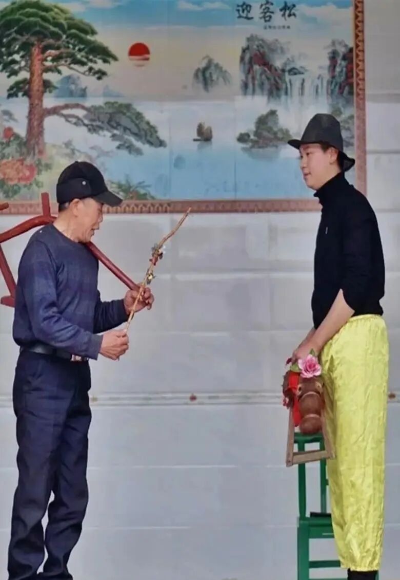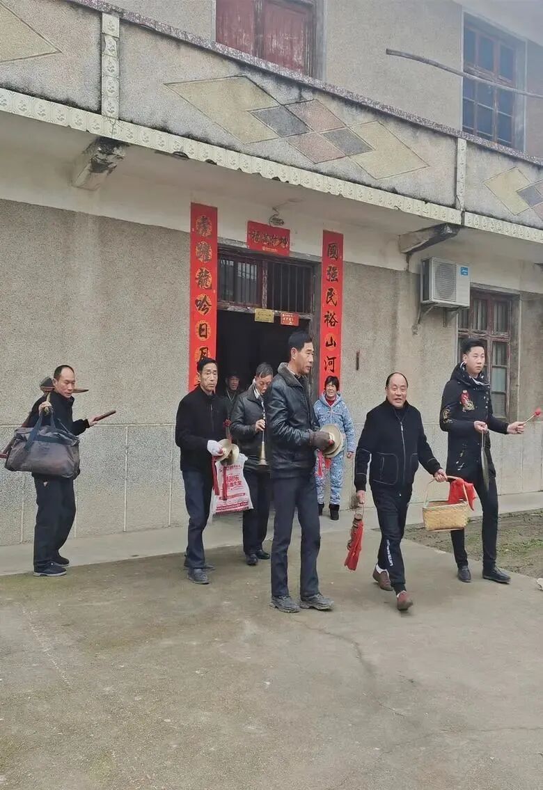 一群穿着粗布衣裤的农民或持钹盘,或按唢呐,或拉二胡,神情专注。其中一个身着灰色棉服的大叔手中挥舞着木质耕犁“呼哧呼哧”地工作着,一边还唱着,“杨老九放好着水,我们一起到南庄去犁田,叫声牛童把牛婆子牵出来。”高亢自然的淳朴人声在乡间流转。在他身边,一个牛童牵着木质小牛左摇右摆地出来“犁田”,围观的人们看到牛童的憨然情态,不约而同地哈哈大笑起来。台下的谢传佑也被这鲜活热闹的场景逗笑了,台上与牛童一起犁田的山伢子蔡焕山正是他父亲扮演的,这场《山伢子犁田》他看了不下百遍。每年正月初一到十五,父亲都会带着他的“草台班子”在萍浏醴地区挨家挨户串门。他们送上牛灯,住户欣然接过,有的人家还会专门放爆竹迎接,表演时全村的男女老幼都聚集在一起,里三圈外三圈把场地围得严严实实,似乎正月里的冷风都透不进来。