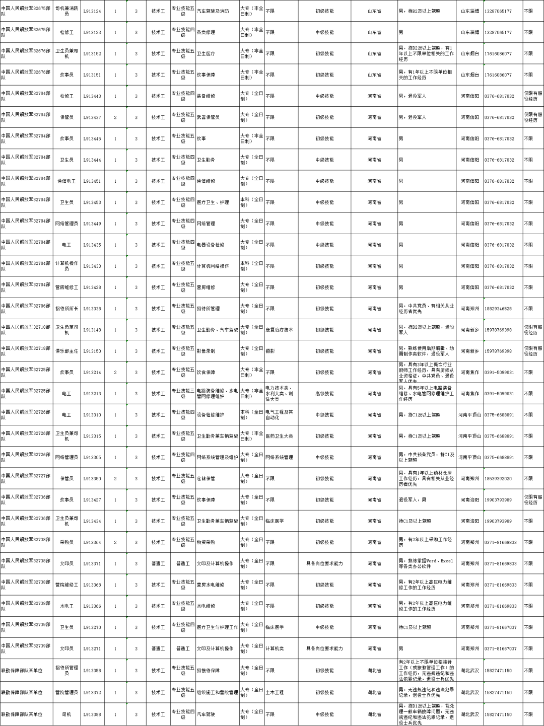 联勤保障部队所属仓储管理、训练保障、医疗卫生等机构的食堂管理员、网络管理员、炊事员、保管员、卫生员、加油员、文印员、化验员、检修工、出纳、司机以及汽车修理工等专业技能三级以下文职人员岗位点击获取职位表。