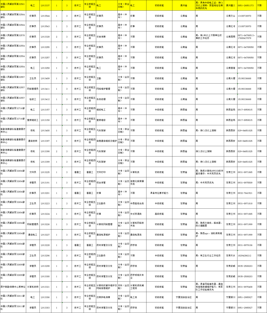近日,联勤保障部队发布公告,面向社会公开招考专业技能岗位文职人员,招聘岗位包括联勤保障部队所属仓储管理、训练保障网络管理员、炊事员、检修工、司机以及汽车修理工等专业技能三级以下文职人员岗位拟招聘332人,工作地分布于28个省(市、区)。9月1日正式报名,高中(中专)学历起报,退役军人优先!根据《中国人民解放军文职人员条例》及有关政策规定,现将2022年联勤保障部队面向社会公开招考专业技能岗位文职人员有关事项公告如下: