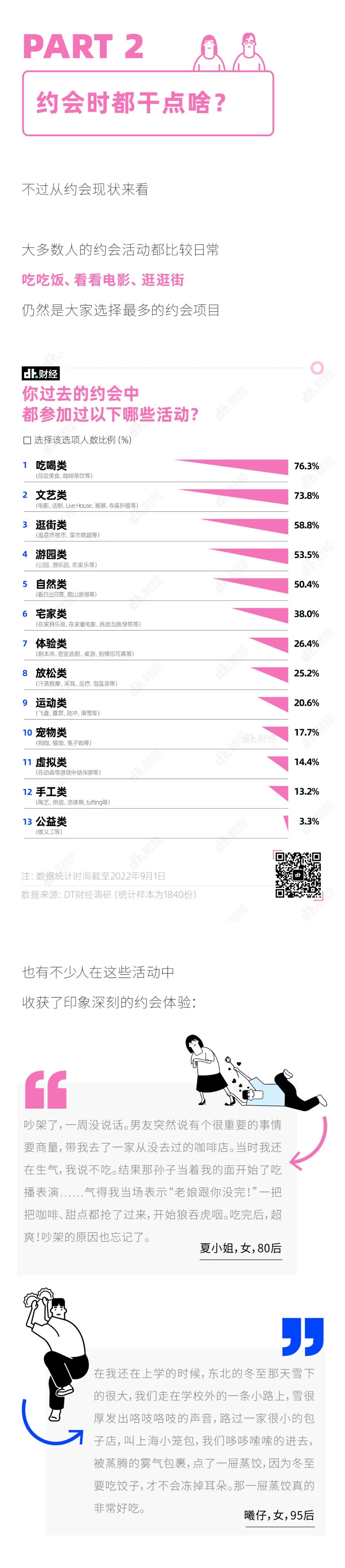 不过在调研中,不少受访者提到,约会形式、约会活动不是最重要的,重要的是对方在这个过程中怎么做、可以带给自己什么样的体验、以及自己对Ta的感觉。