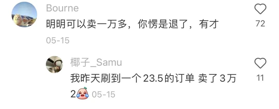 根据特斯拉官方定价的变化,对于锁定价格较低的订单,不少车主表示,市场常常能给出1-3万的报价(定金原价1000元)。小红书上有用户下定后因不想购买,而退了定金,评论都替她惋惜: