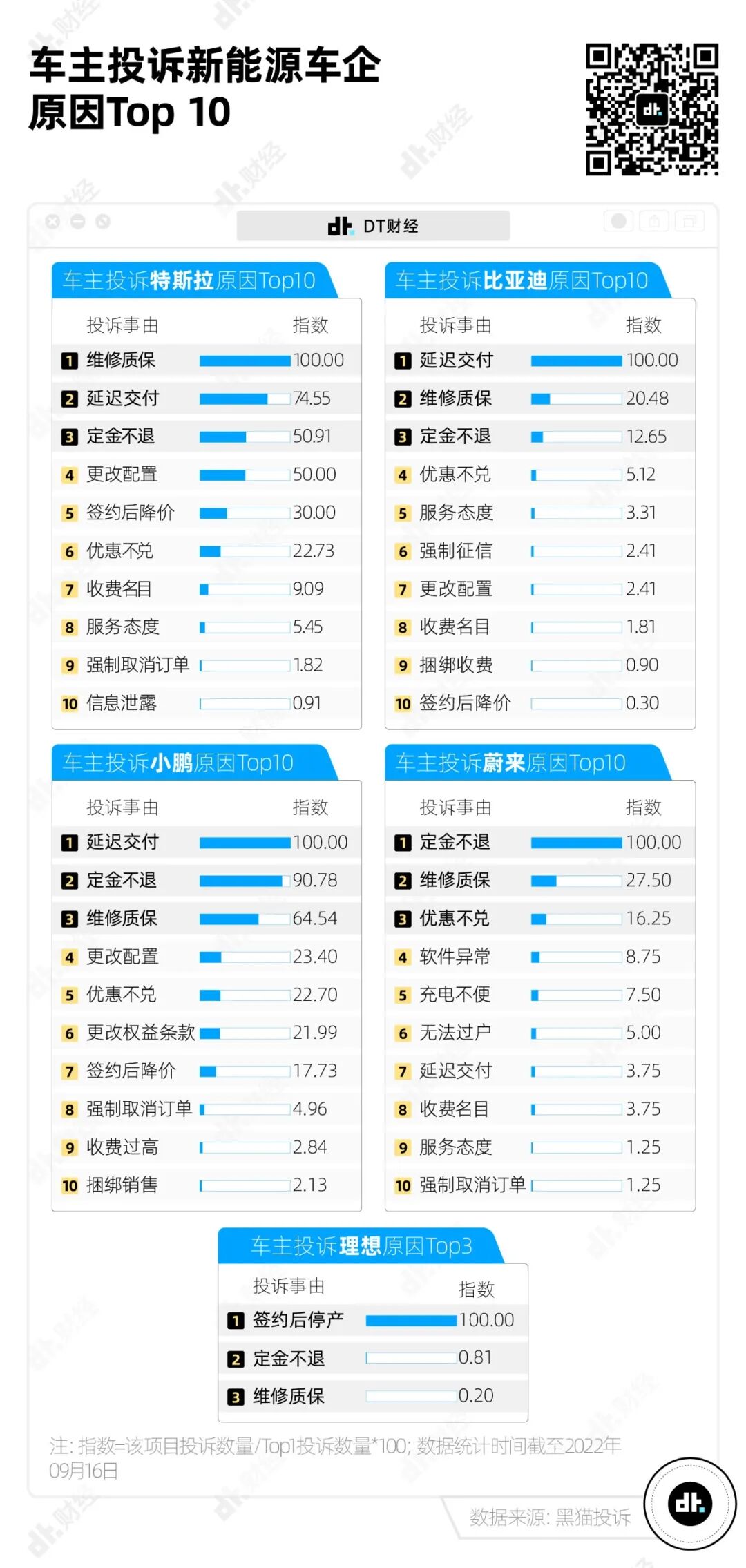 除了“延迟交付”、“定金不退”、“签约后降价”等与销售环节相关的问题外,很多新能源车消费者遇到的问题出现在售后。