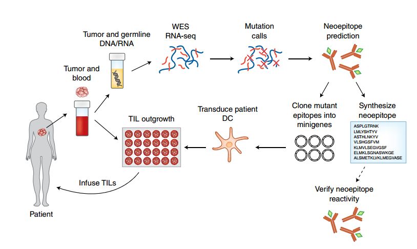 研究团队首先会确定患者病例中特定的突变,之后利用突变信息找到能够最有效瞄准这些突变的T细胞,最后提取出专门患者肿瘤中细胞突变的T细胞。